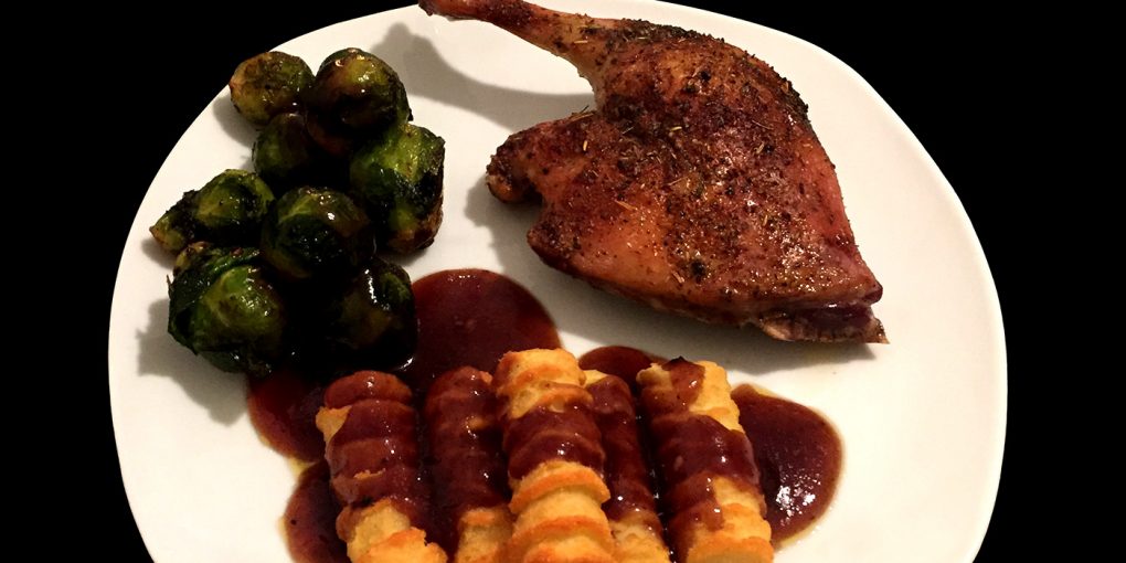 5. Die Entenkeulen bei Grillfunktion nochmal 10 min im Ofen lassen.